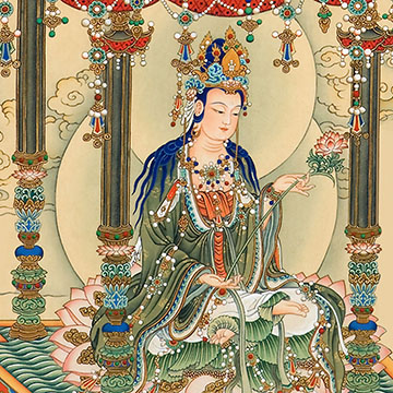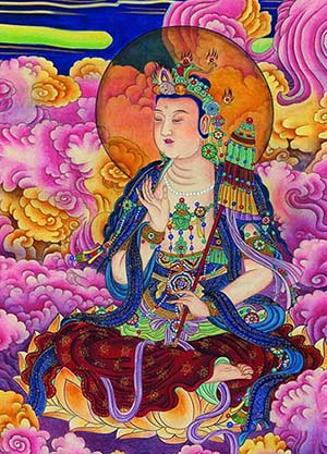 其德行为消除所有一切烦恼之障碍,为胎藏界曼荼罗除盖障院之中尊,也是金刚界曼荼罗贤劫十六尊之一。根据佛经记载,除盖障菩萨的修行历史异常悠久,其弘化功绩不胜枚举。而这位大菩萨代表的清除盖障、消灾免难也是当今世人之急需,毫无疑问,虔诚礼敬这位大菩萨,认真践履谨言慎行、清心寡欲的功夫,逐步减少自己修行道路上的障碍,乃是离苦得乐、趋向菩提的关键之所在。